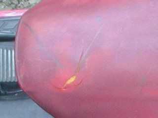 最近、寒さのせいかシートが固い。座った跡もなかなか取れないし、触った感触も異様に固い。まぁシート革という感触でないことは確かだ。 と、思っていた風の強いある晩、留めていた場所に戻ってみると隣にいた自転車がもたれかかっている。 このやろジャマだ、とひっぺがして帰ってきたんだが、翌朝、明るいところで見るとシートが「割れて」いる。 経年変化なんだろうか。気温のせいか。 皮ってまだ売ってたんだっけ? |