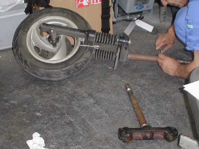 | 作業を見守る間、ステム一式を他車種と比較したりして時間をつぶす。 | ||||||