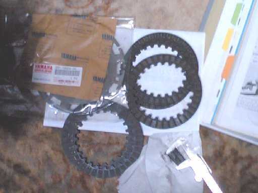 | 音の原因はわからないがクラッチが怪しい。 志田さんちの帰り道。YSPへ回る。 おそるおそる値段を調べてもらう。クラッチプレートは2.0,2.3,2.6の3種。このうちどれか1個、欠品だった気もするが、一番厚いのを見てみたら、これはあるらしい。 社長、直々に調べてもらって、引っ込みもつかないし、久々の顔つなぎの意味も含めて注文することにした。 フリクションプレートも半端に2枚頼む。懸案の、セルモーターのブラシは値段聞いただけでお預け。 届くまでの1週間。なにか音が変わったみたいだ。 |