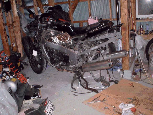 いまのところの課題はエキパイが地面に擦ることくらいかな?足回りのセッティングは残っているが、これは乗り方とともに永遠の課題かも。 街乗りで燃費が12km/lになっているのは問題だが、EXUPなしで低速を稼ぐためにダイノジェットがガソリンを撒いて走っているせいらしい......... トレーシーの方は話題??に事欠かないが、FZはこのところ動きがなかった。 で、トレーシーが動かなくなったのでFZを出してみたら、ギアが固い。オイルくらい交換しよう。 ちょうど、ZZR分解日記が始まるというので、でべガレへ行く約束だった。 ついでに自分のオイルを担いでいく。 |